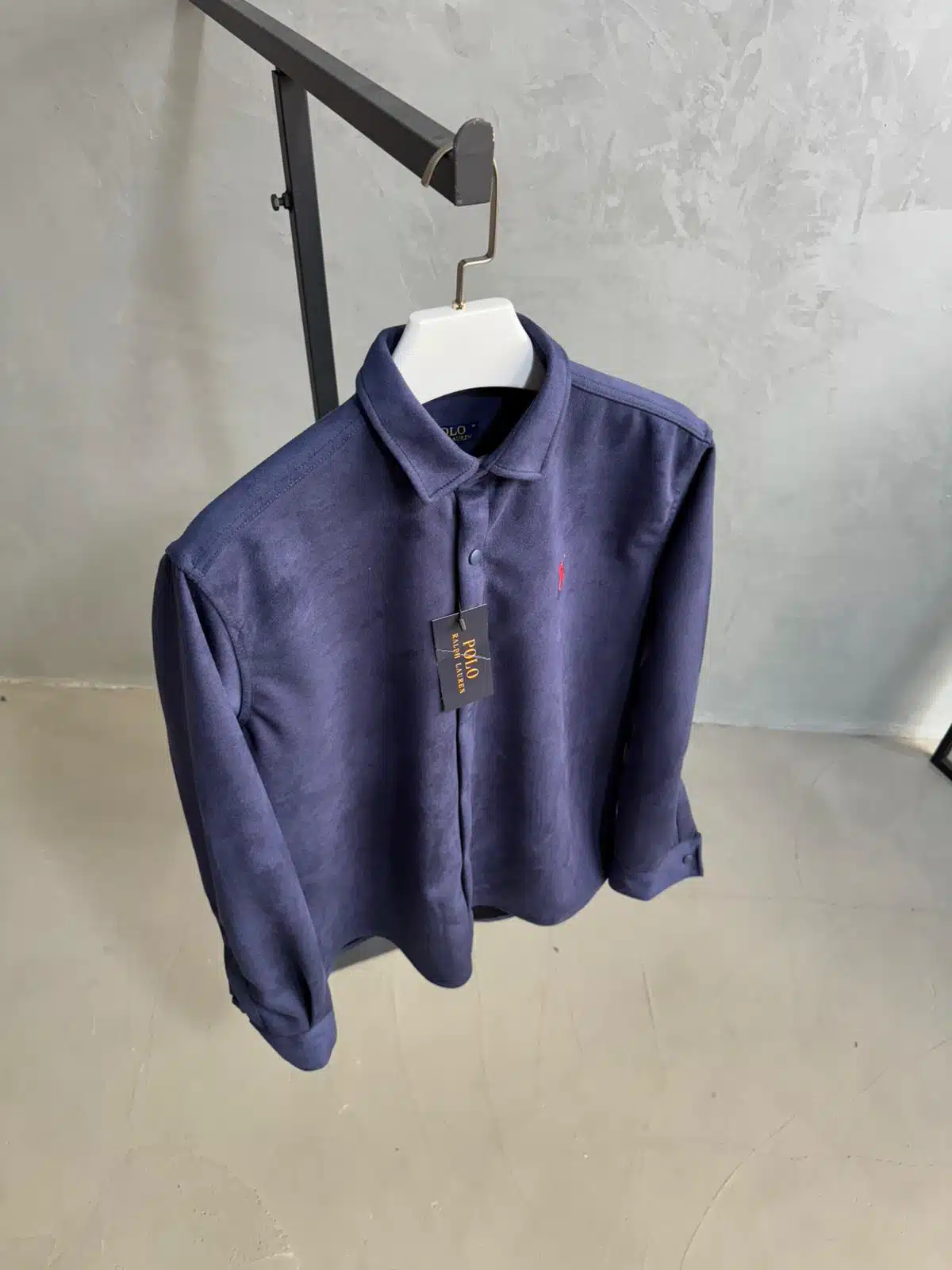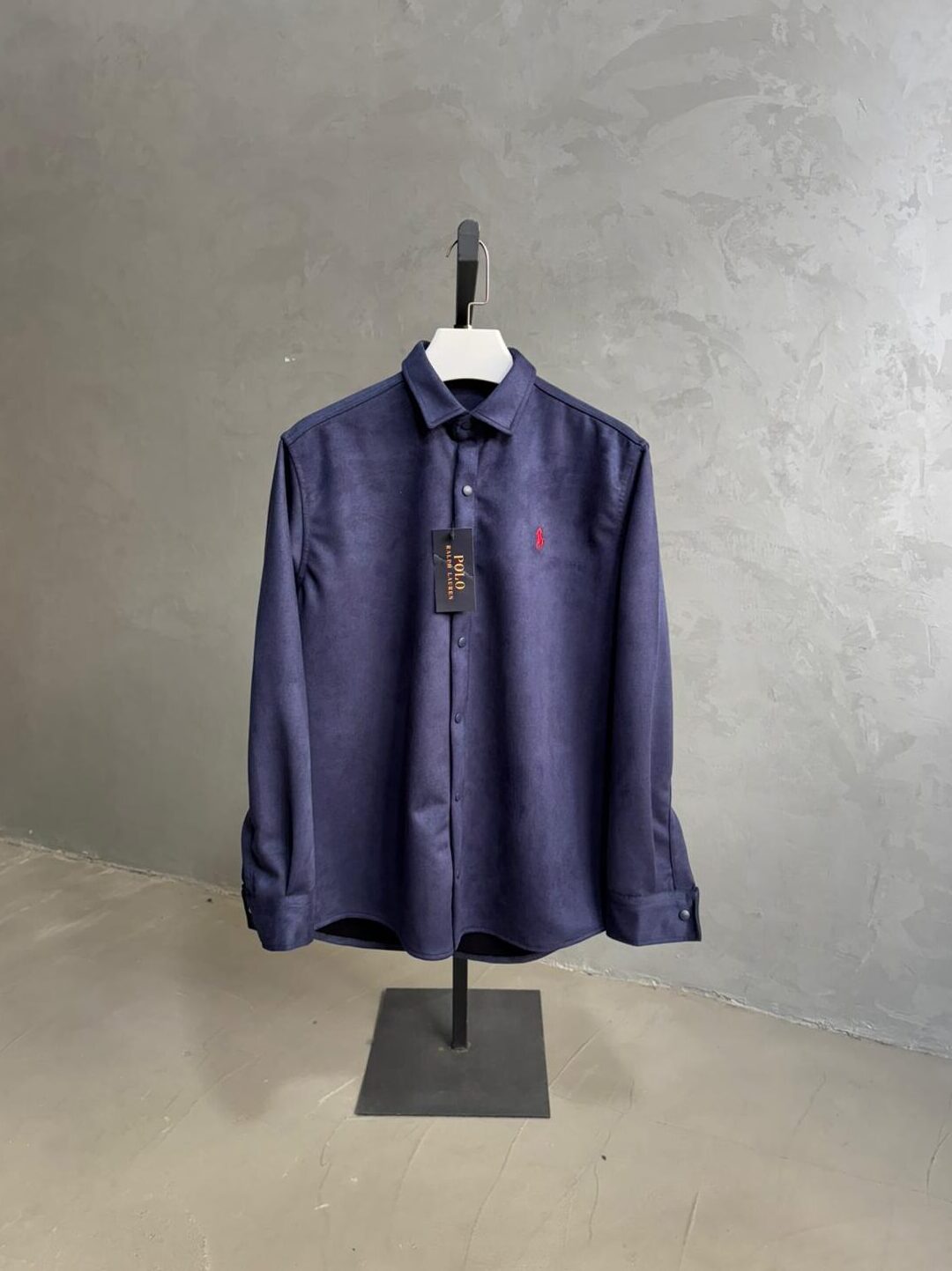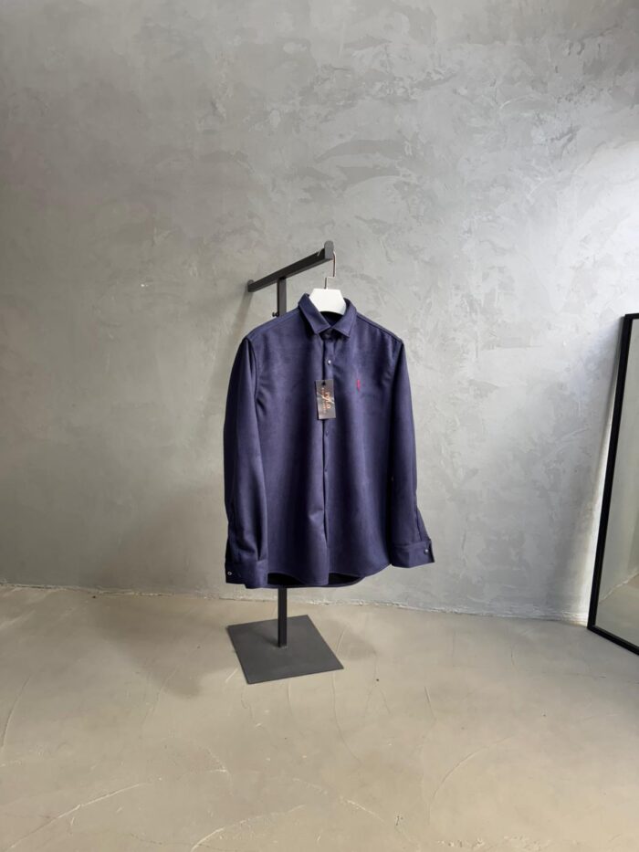 RL Nakışlı Kadife %100 Pamuk Gömlek – Lacivert