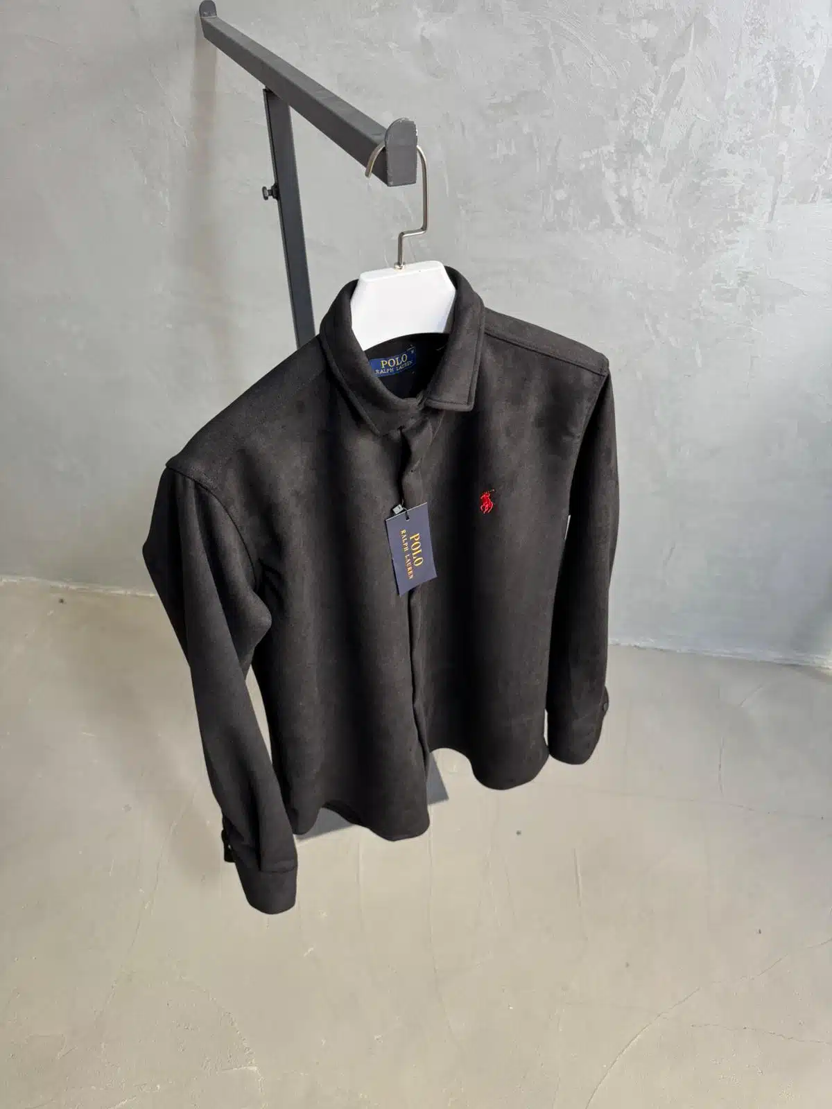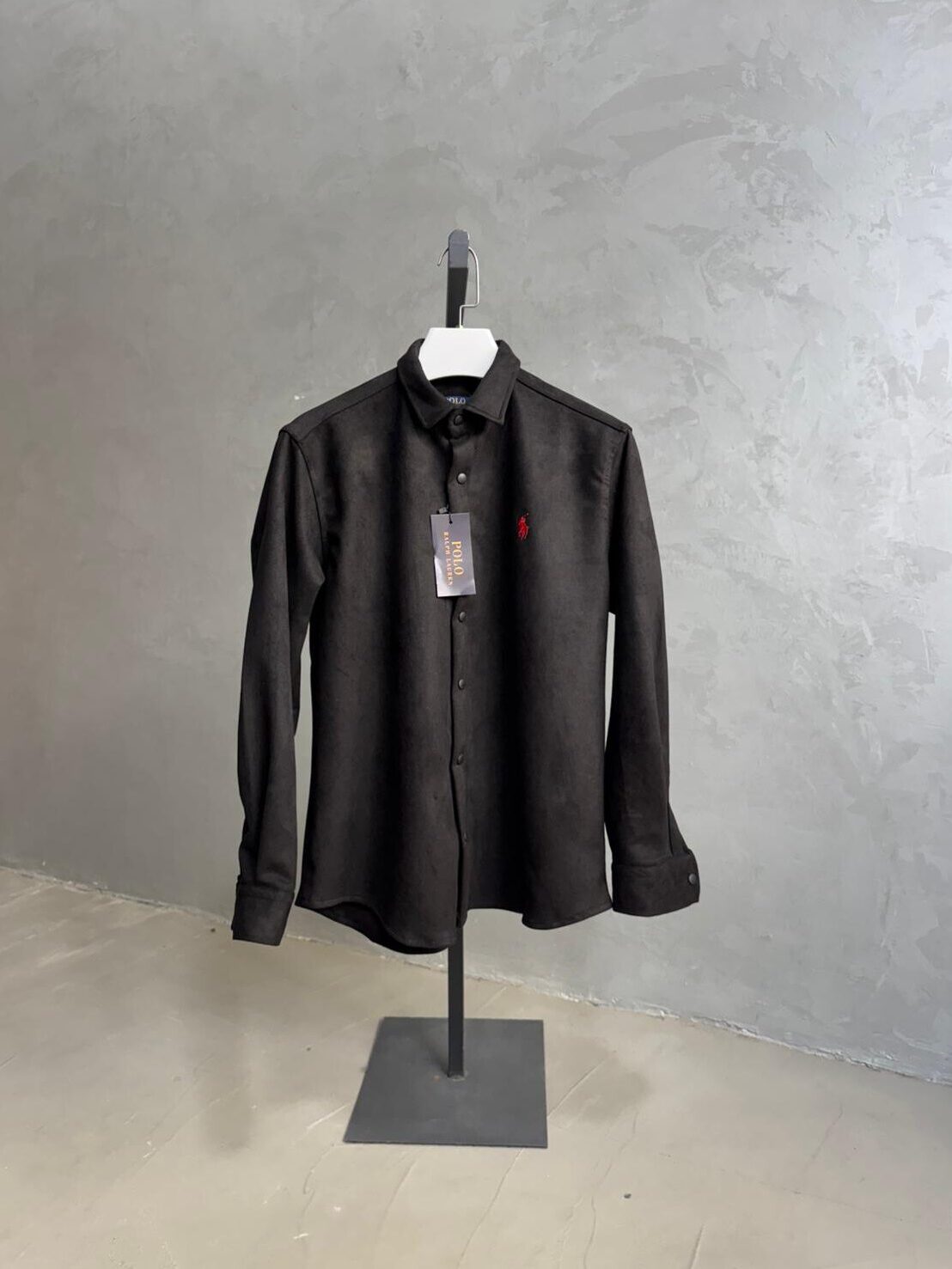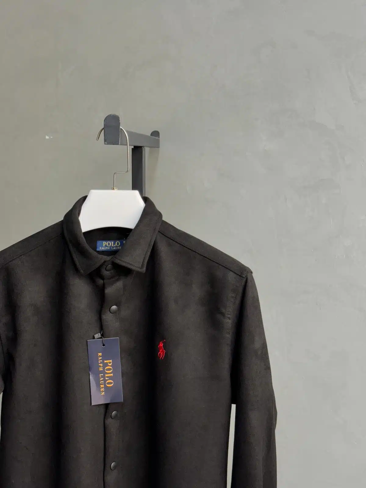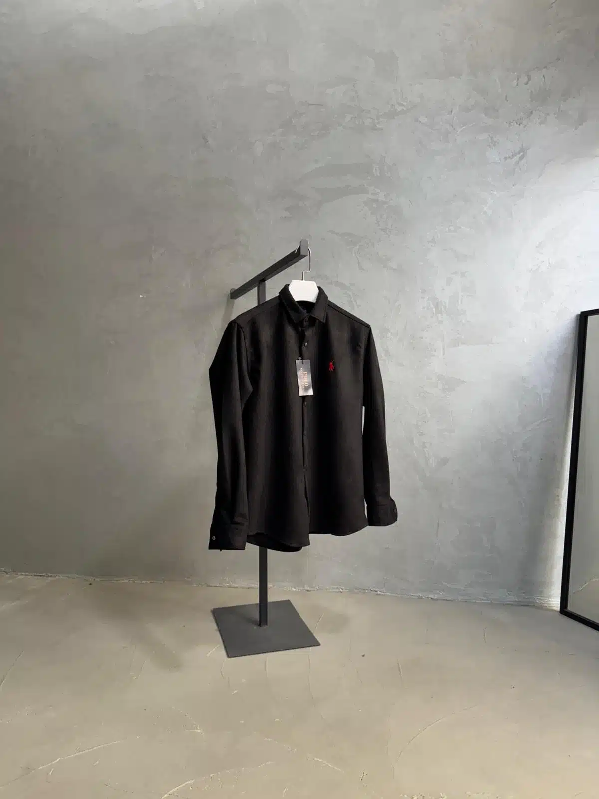 RL Nakışlı Kadife %100 Pamuk Gömlek – Siyah
