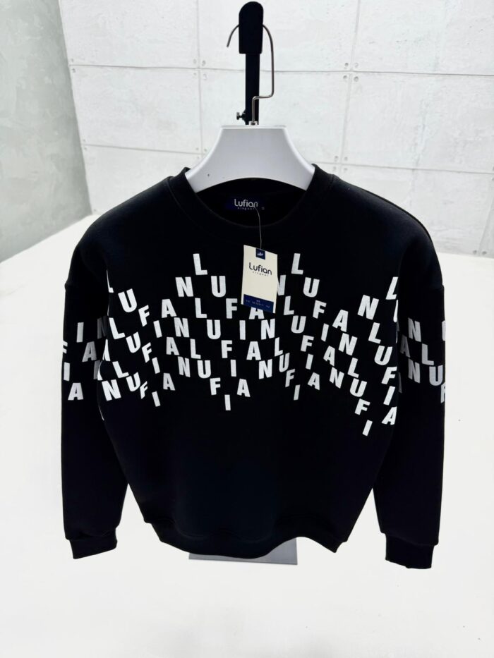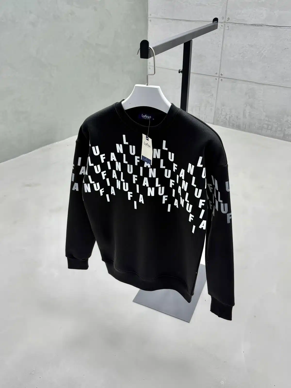 LFN Rose Kabartma Baskılı Üç İplik Sweatshirt – Siyah