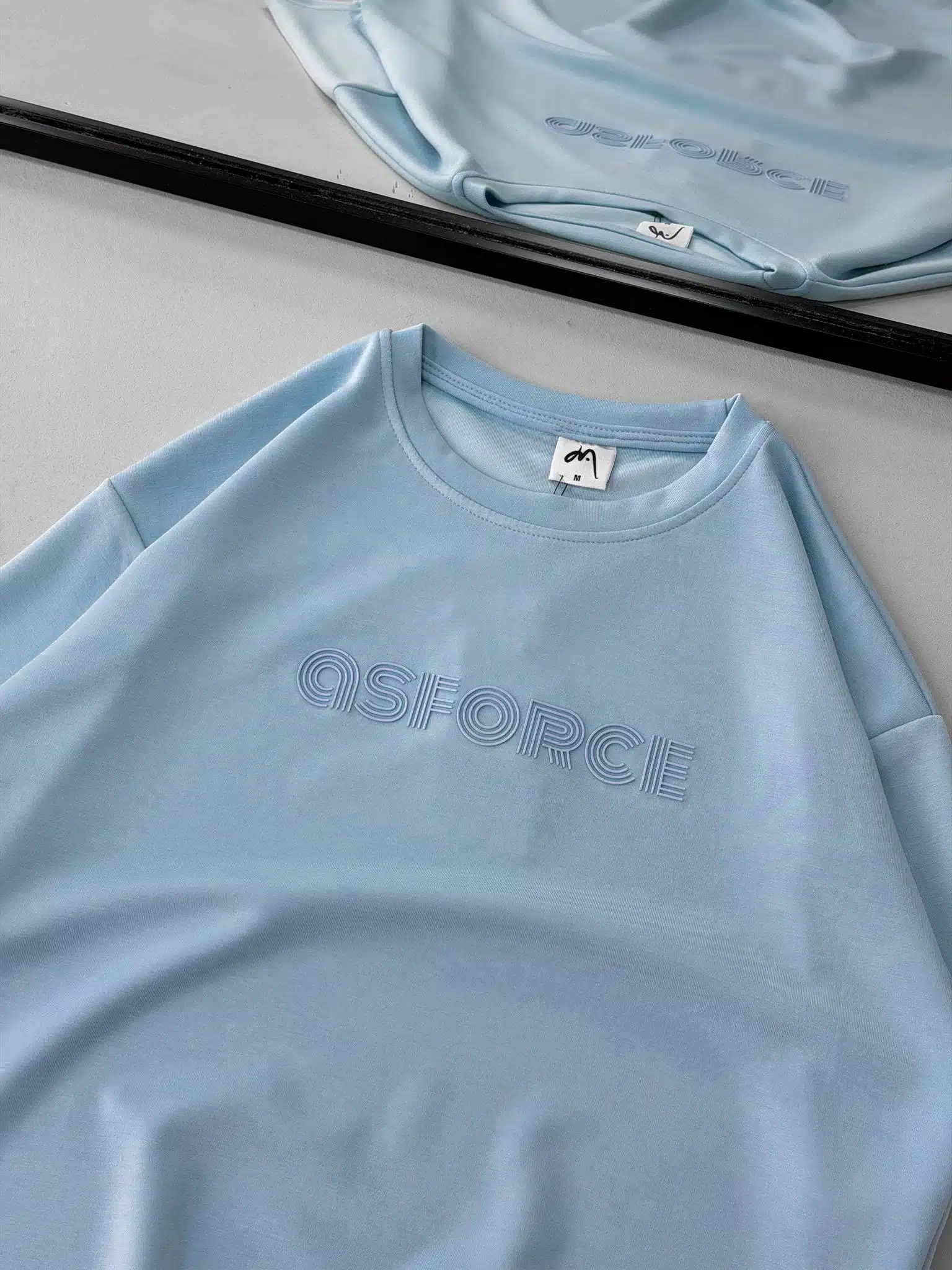 S Force Baskı Detaylı Bisiklet Yaka Tshirt – Açık Mavi