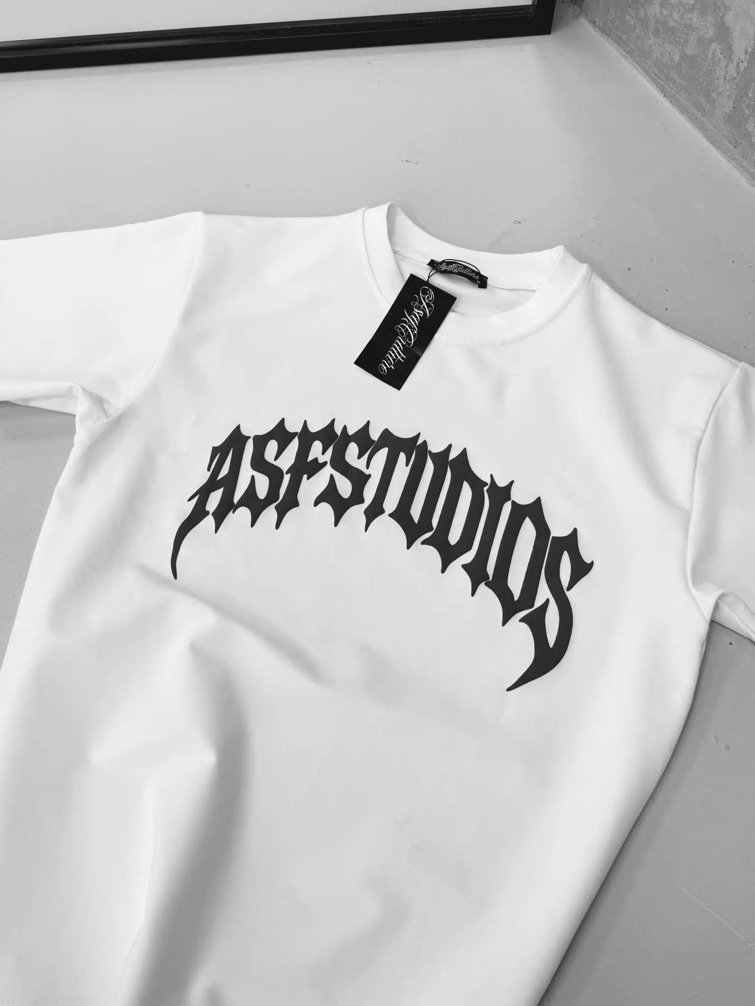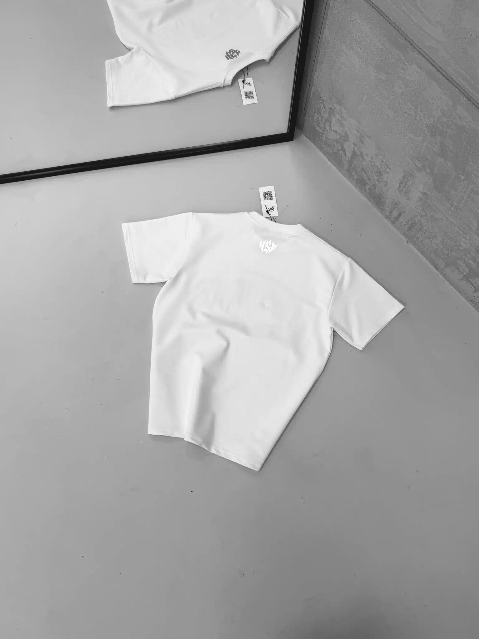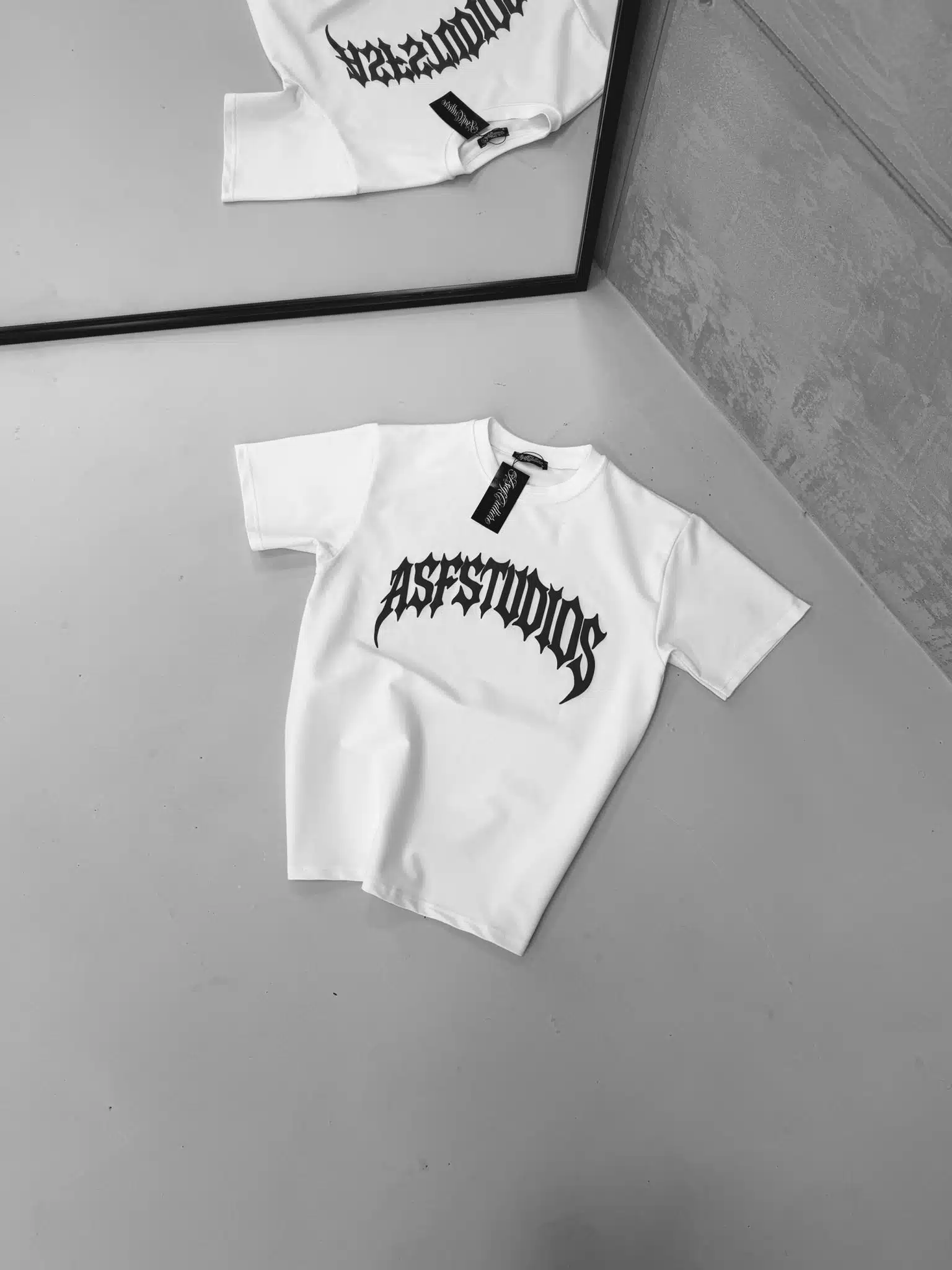 SF Studios Kabartma Baskı Detaylı Bisiklet Yaka Tshirt – Beyaz
