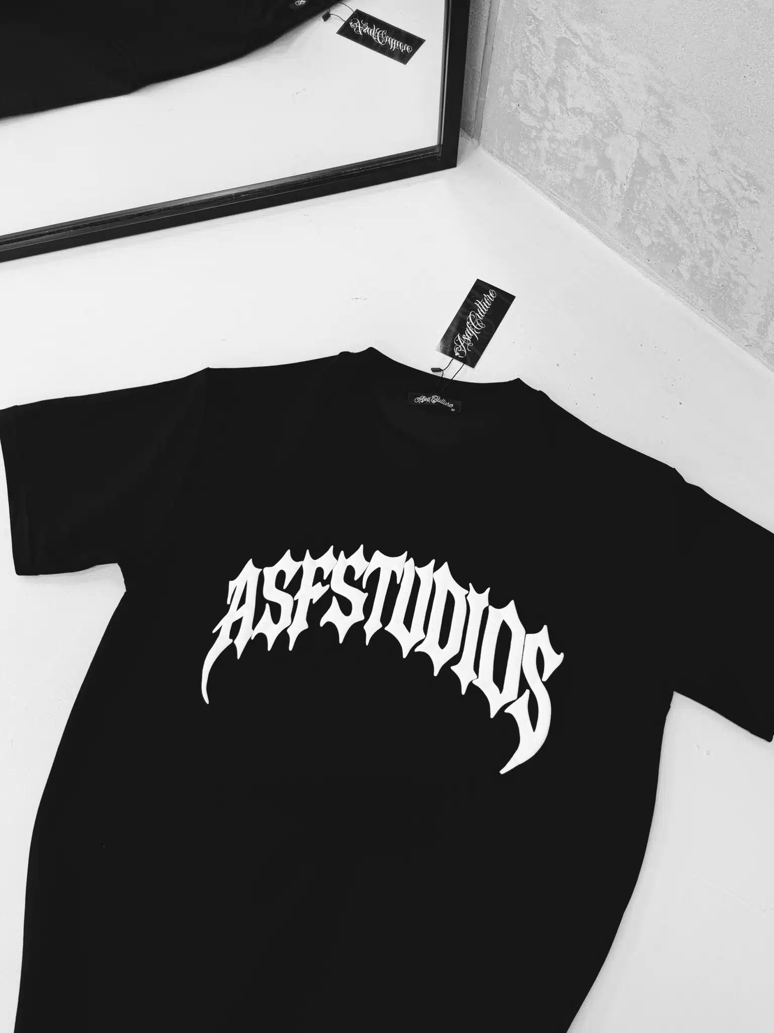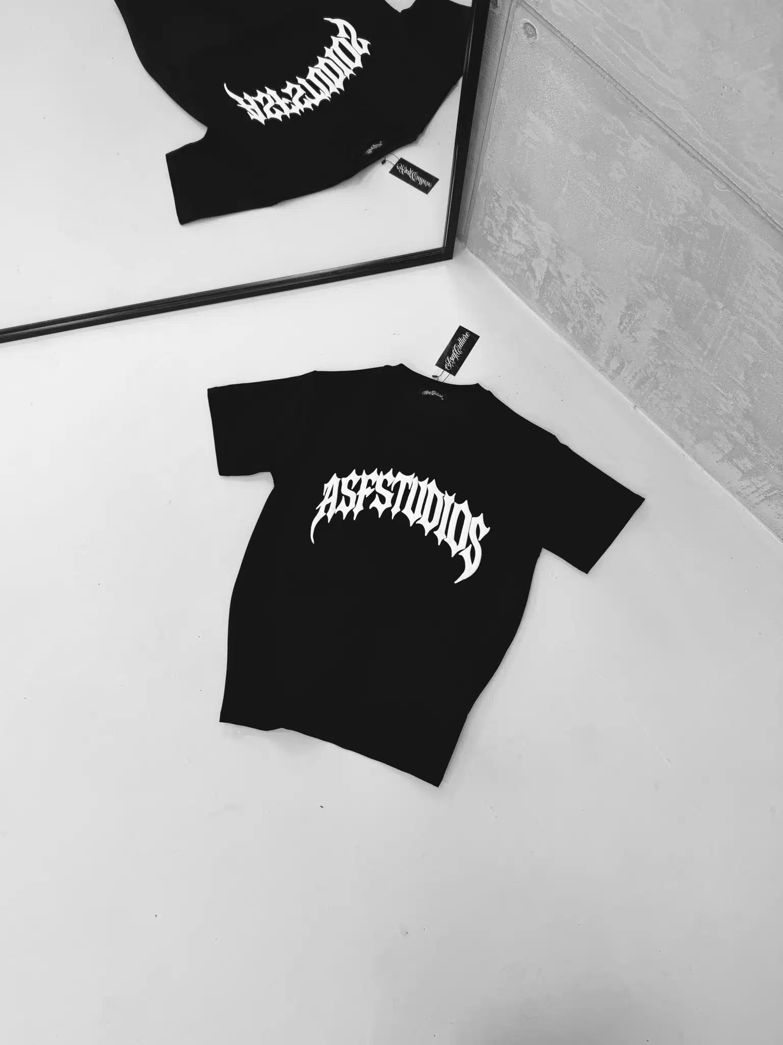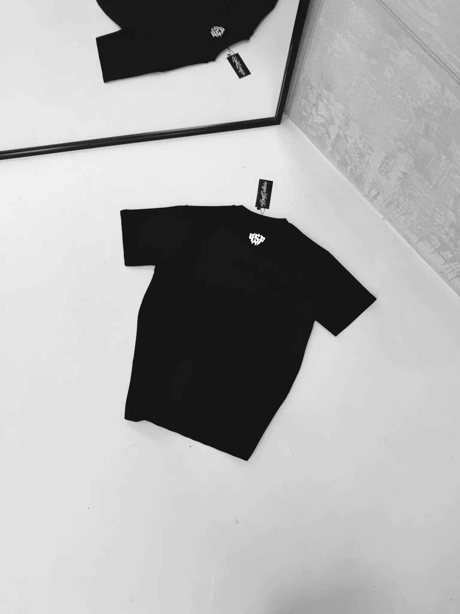 SF Studios Kabartma Baskı Detaylı Bisiklet Yaka Tshirt – Siyah