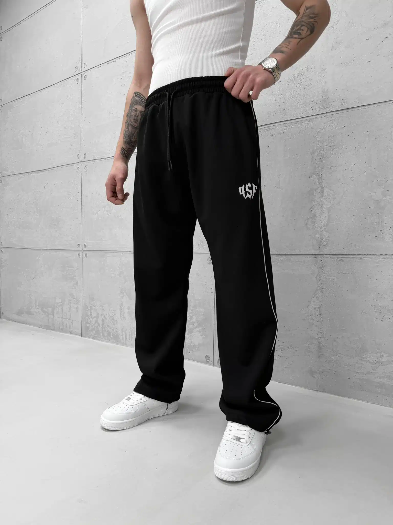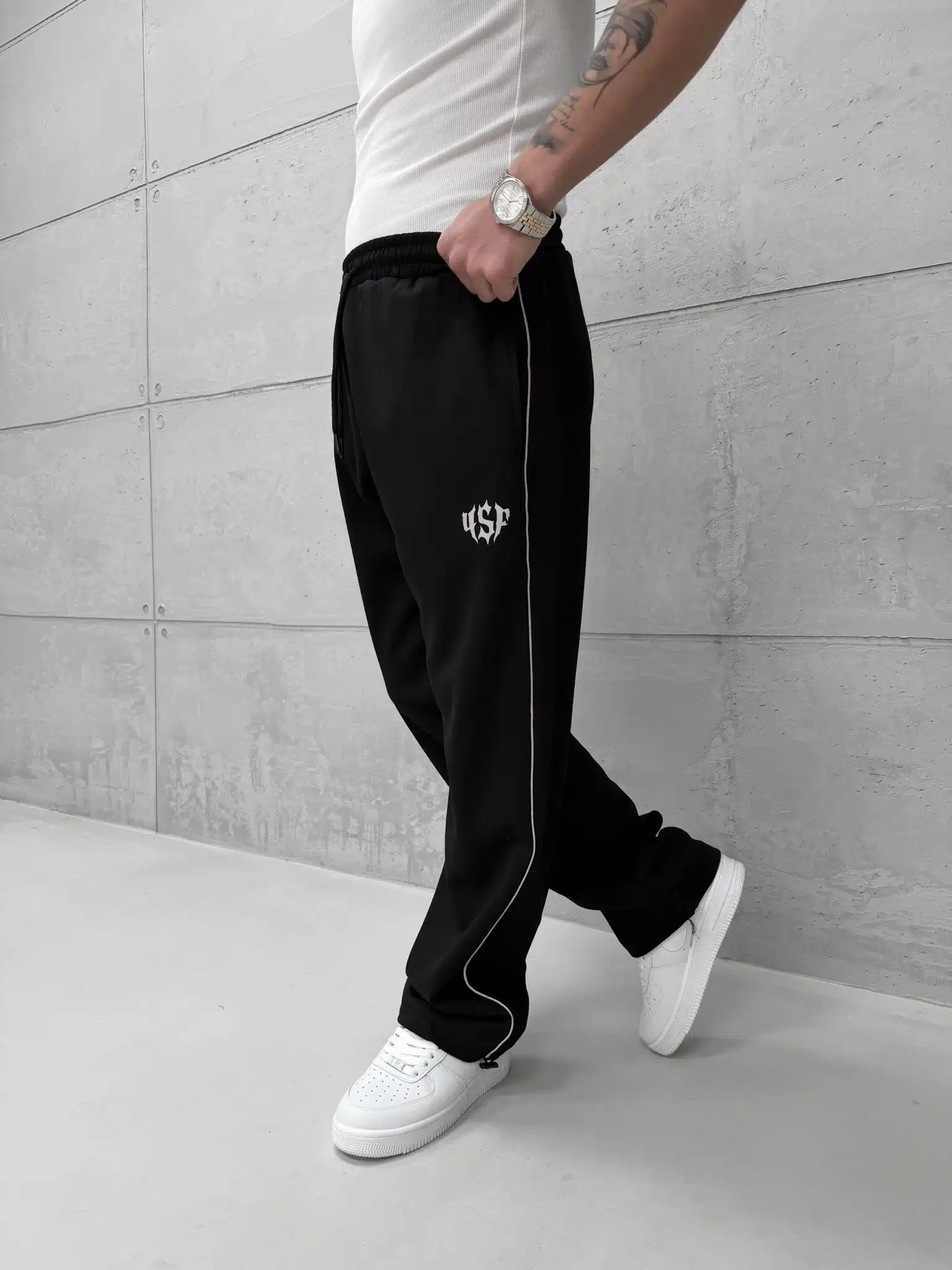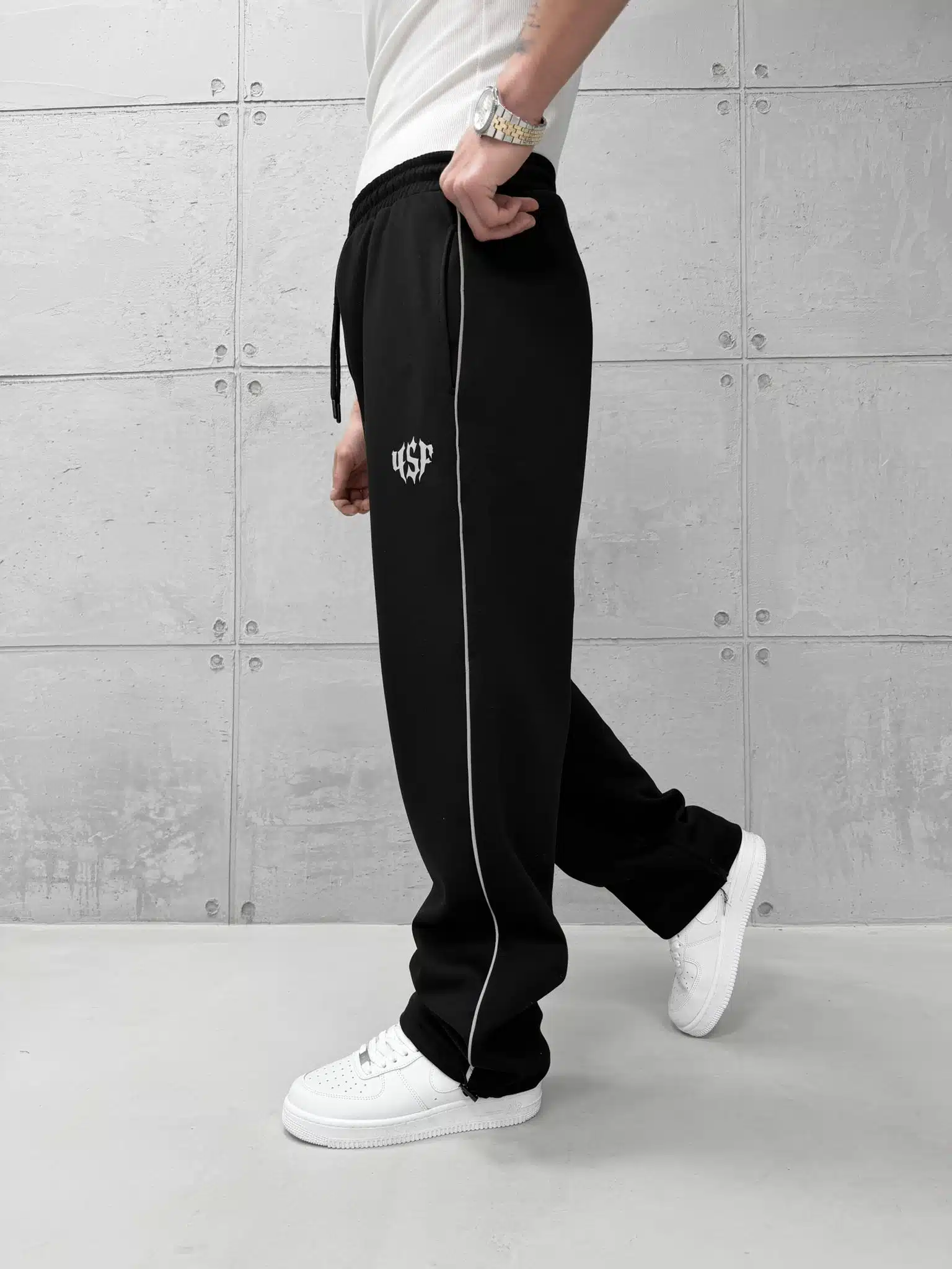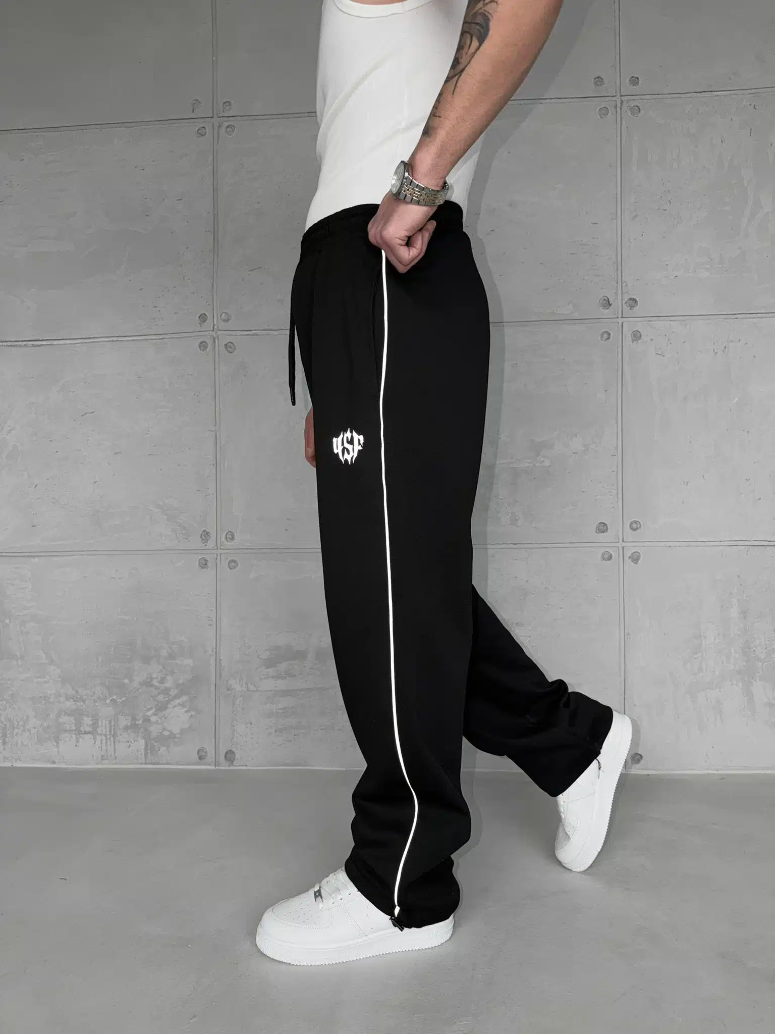 SF Studios Şeritli Reflektör Detaylı Stoper Paça Baggy Eşofman – Siyah