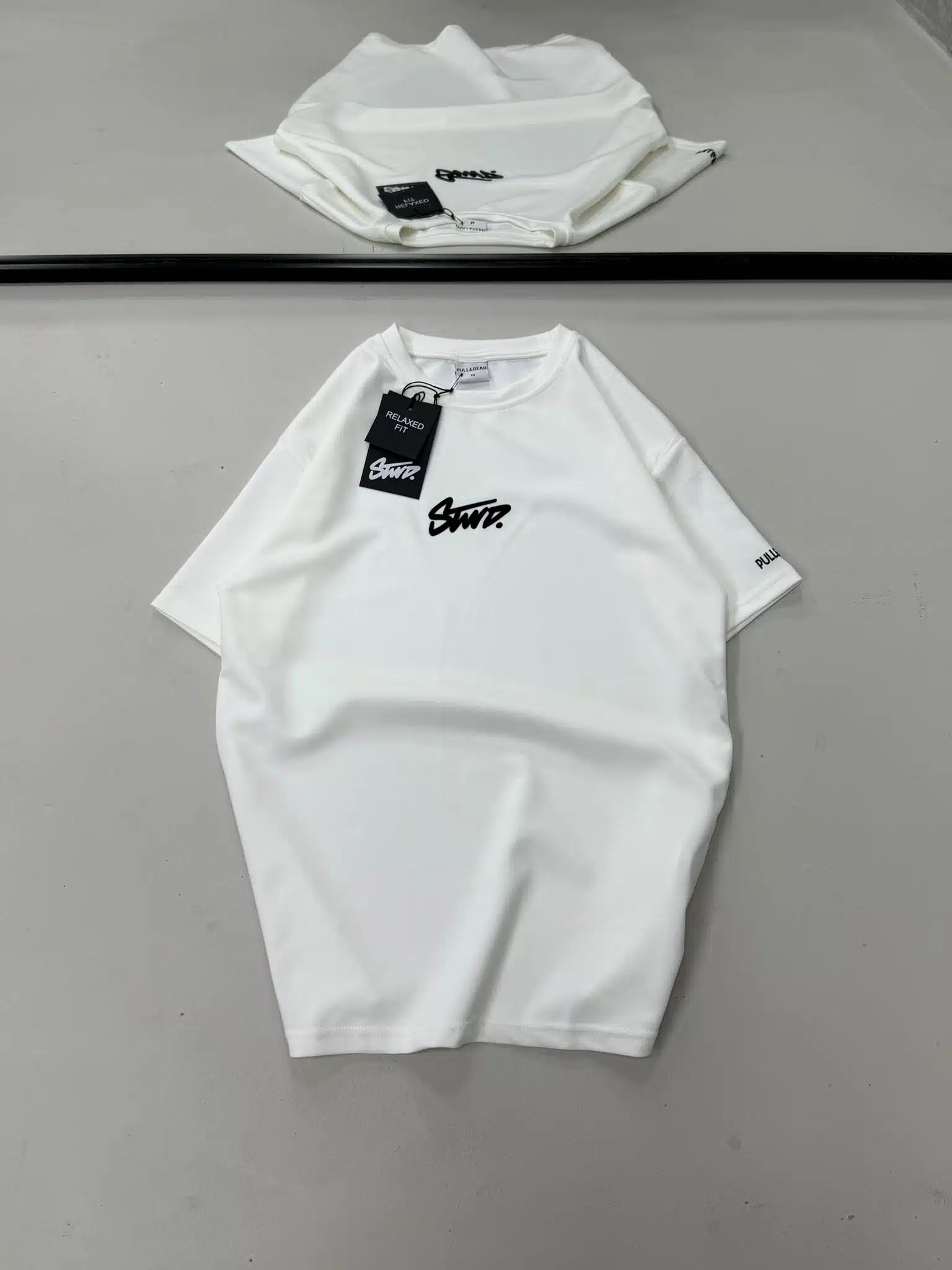 ST Enjeksiyon Baskılı Kol Detaylı Bisiklet Yaka Tshirt – Beyaz