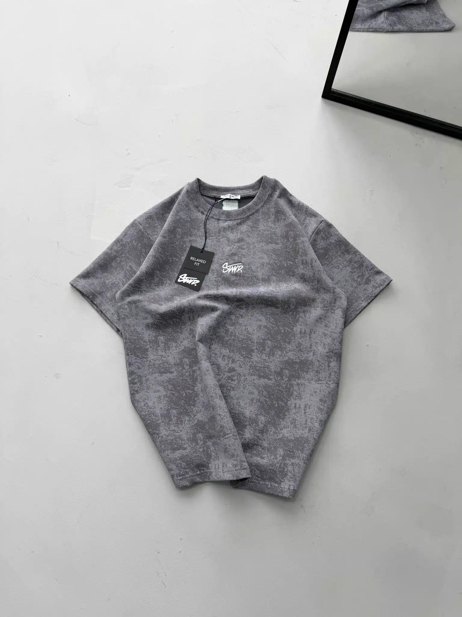 ST Nakış Detaylı Yıkamalı Bisiklet Yaka Tshirt – Gri