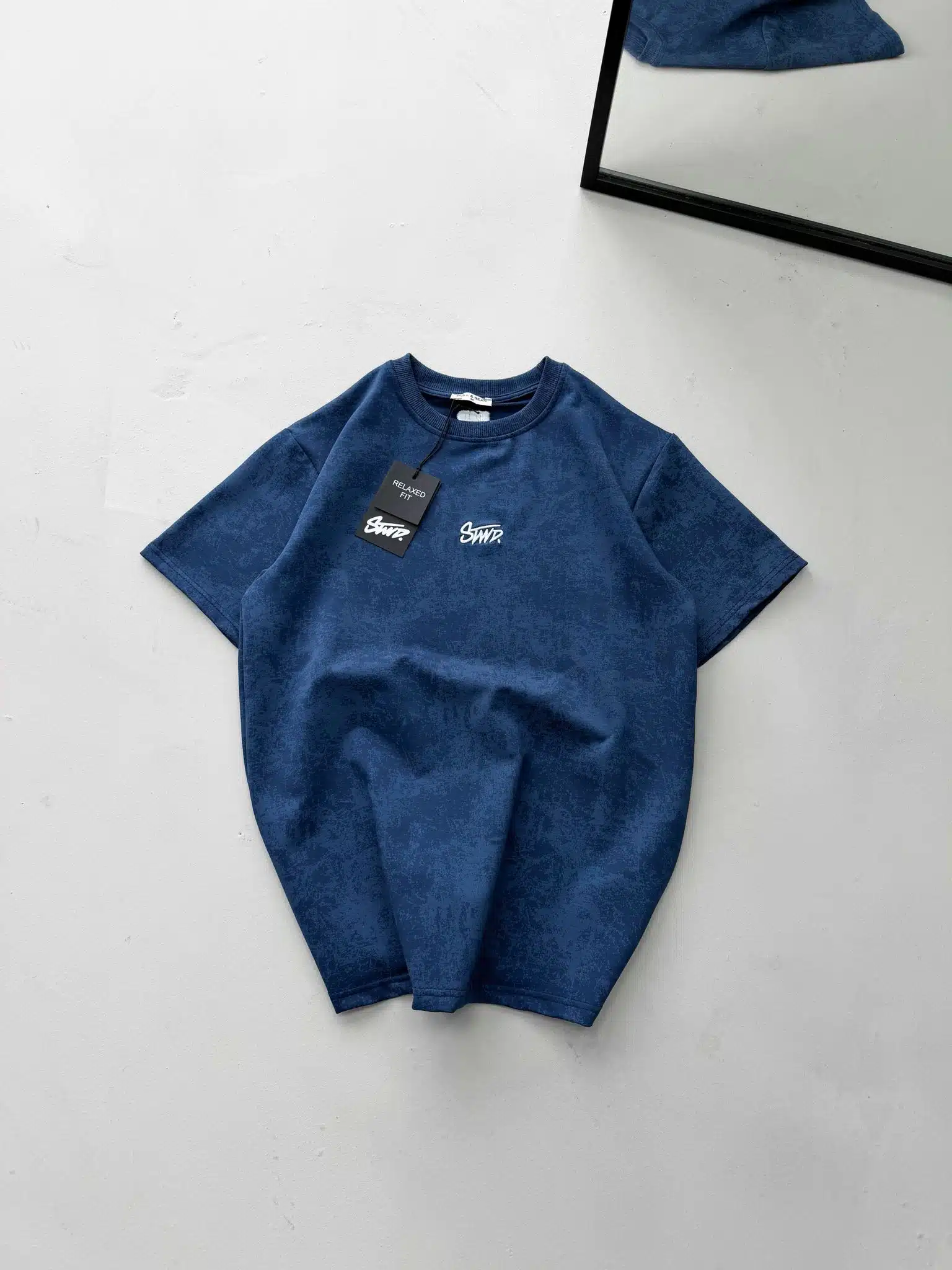 ST Nakış Detaylı Yıkamalı Bisiklet Yaka Tshirt – İndigo