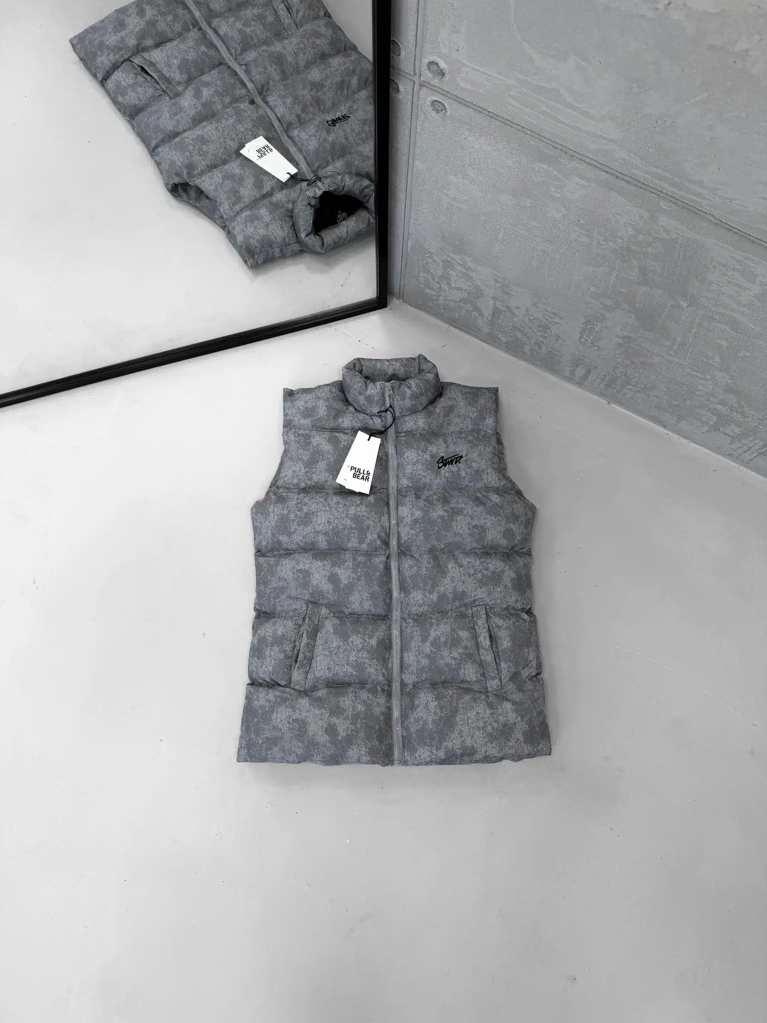 ST Nakış Detaylı Yıkamalı Yelek – Gri