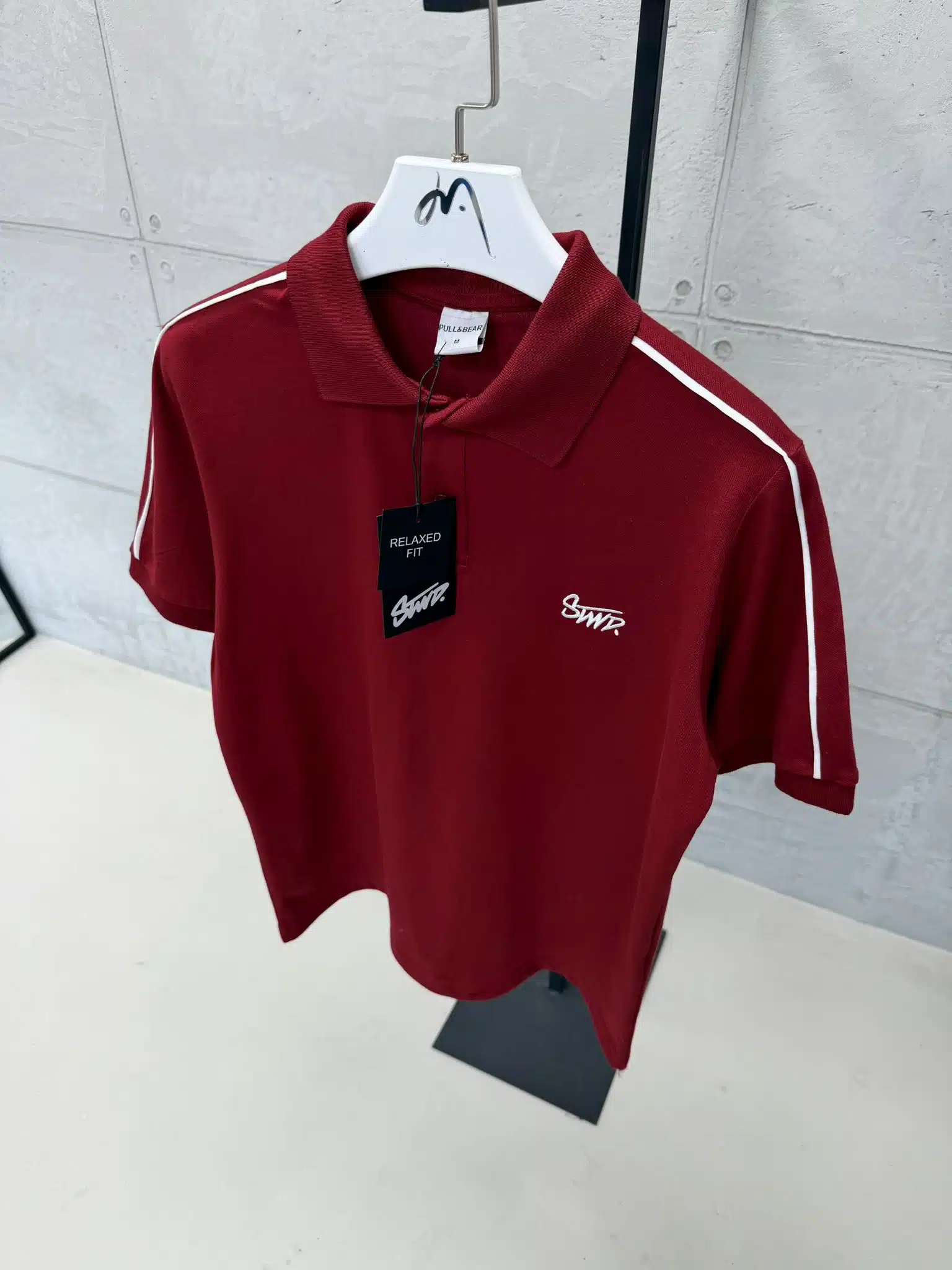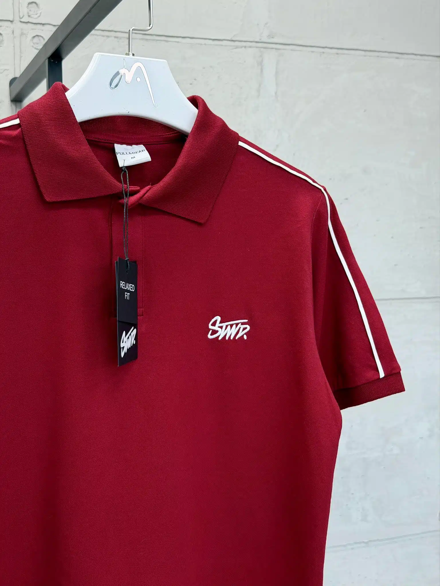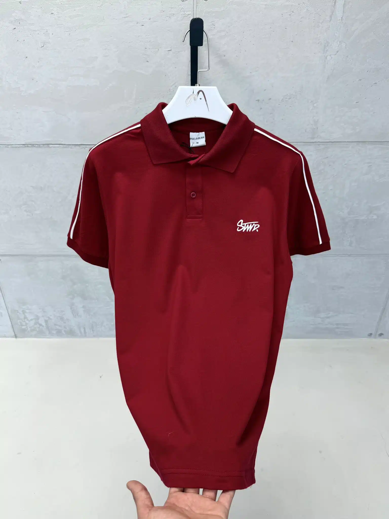 ST Şeritli Nakış Detaylı Regular Fit Polo Yaka Tshirt – Bordo