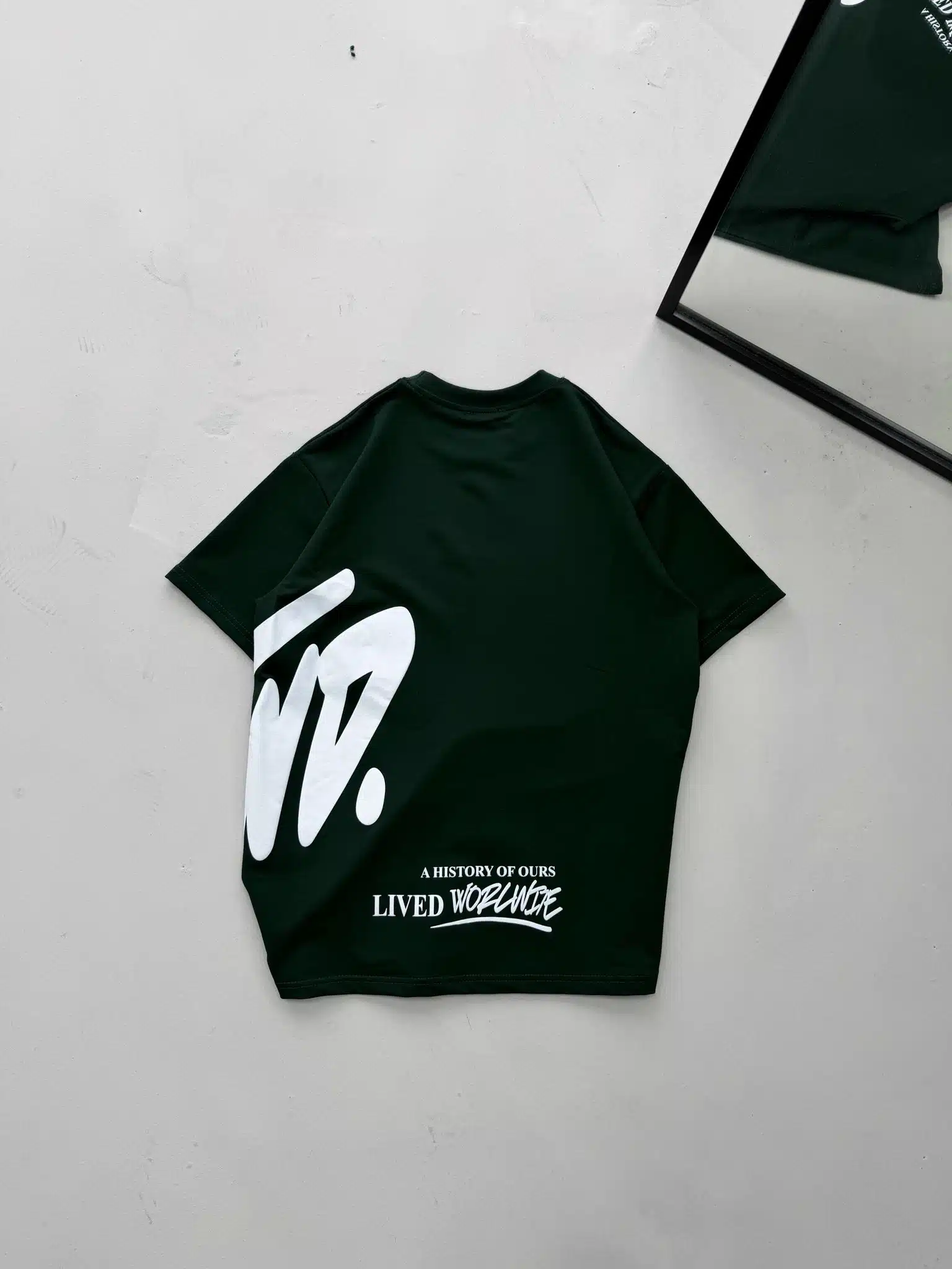ST Yan Kabartma Baskılı Bisiklet Yaka Tshirt -Koyu Yeşil