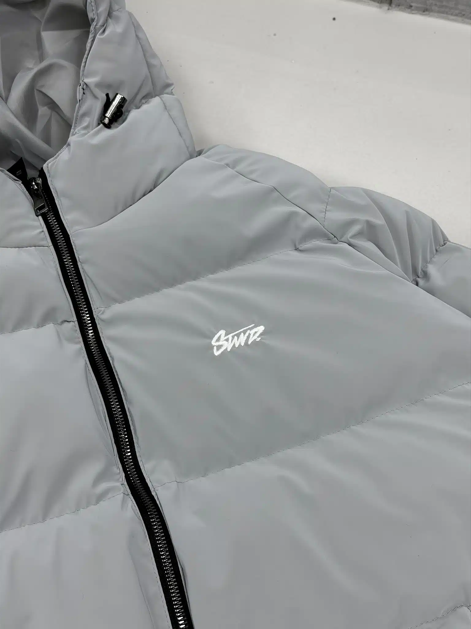 STWD Nakışlı Nova Kapşonlu Şişme Mont – Gri