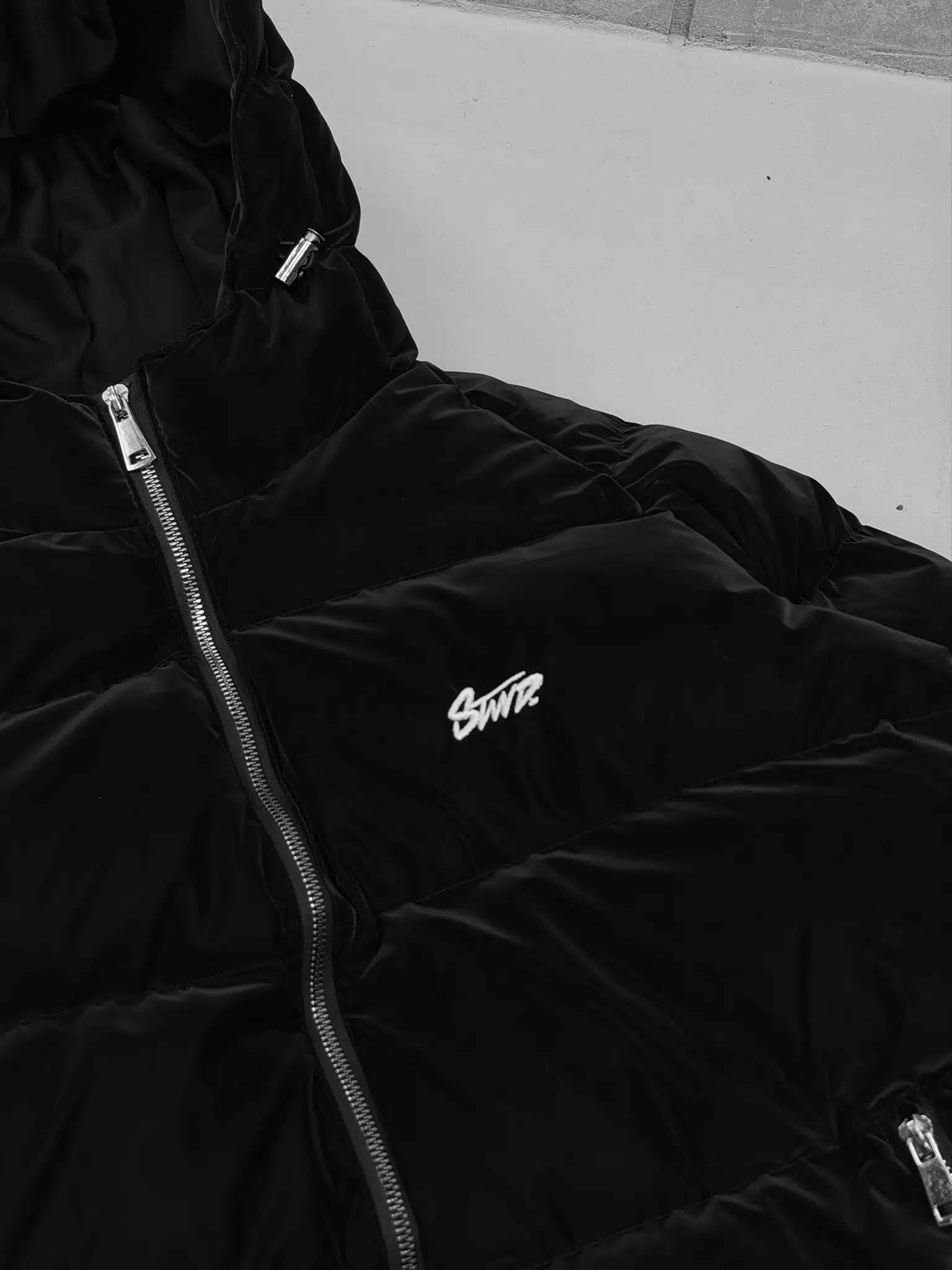 STWD Nakışlı Nova Kapşonlu Şişme Mont – Siyah
