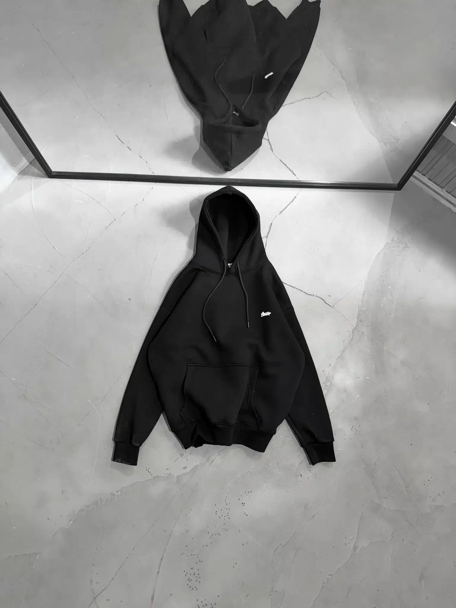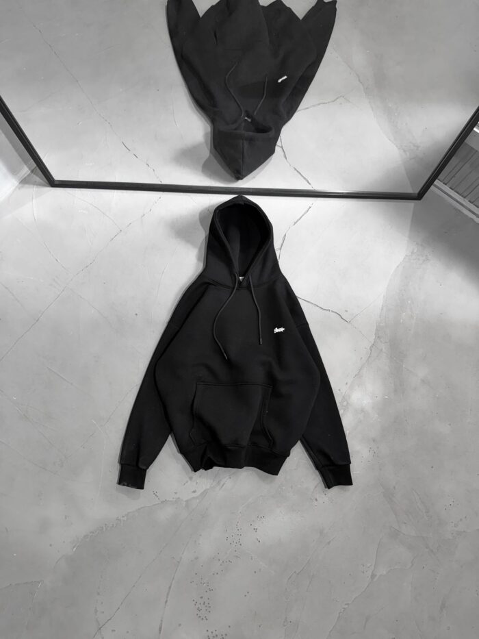 SW Kabartma Sırt Baskılı Kapşonlu Sweatshirt – Siyah