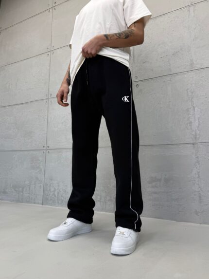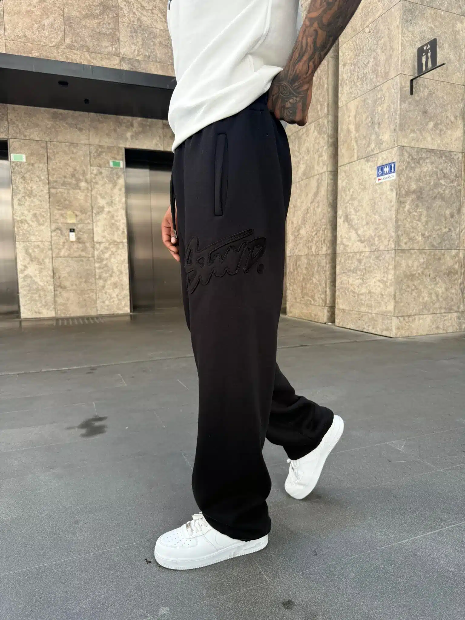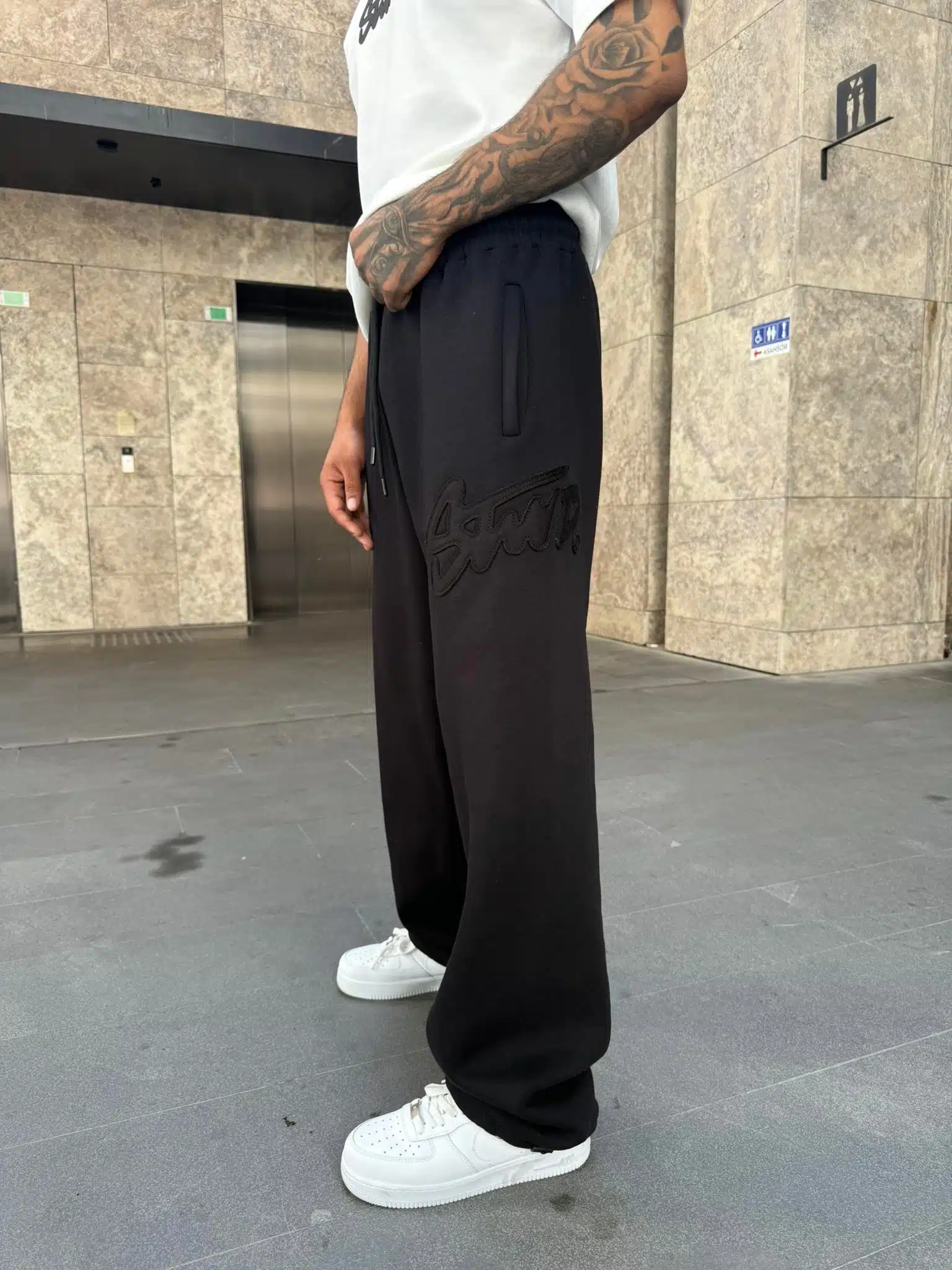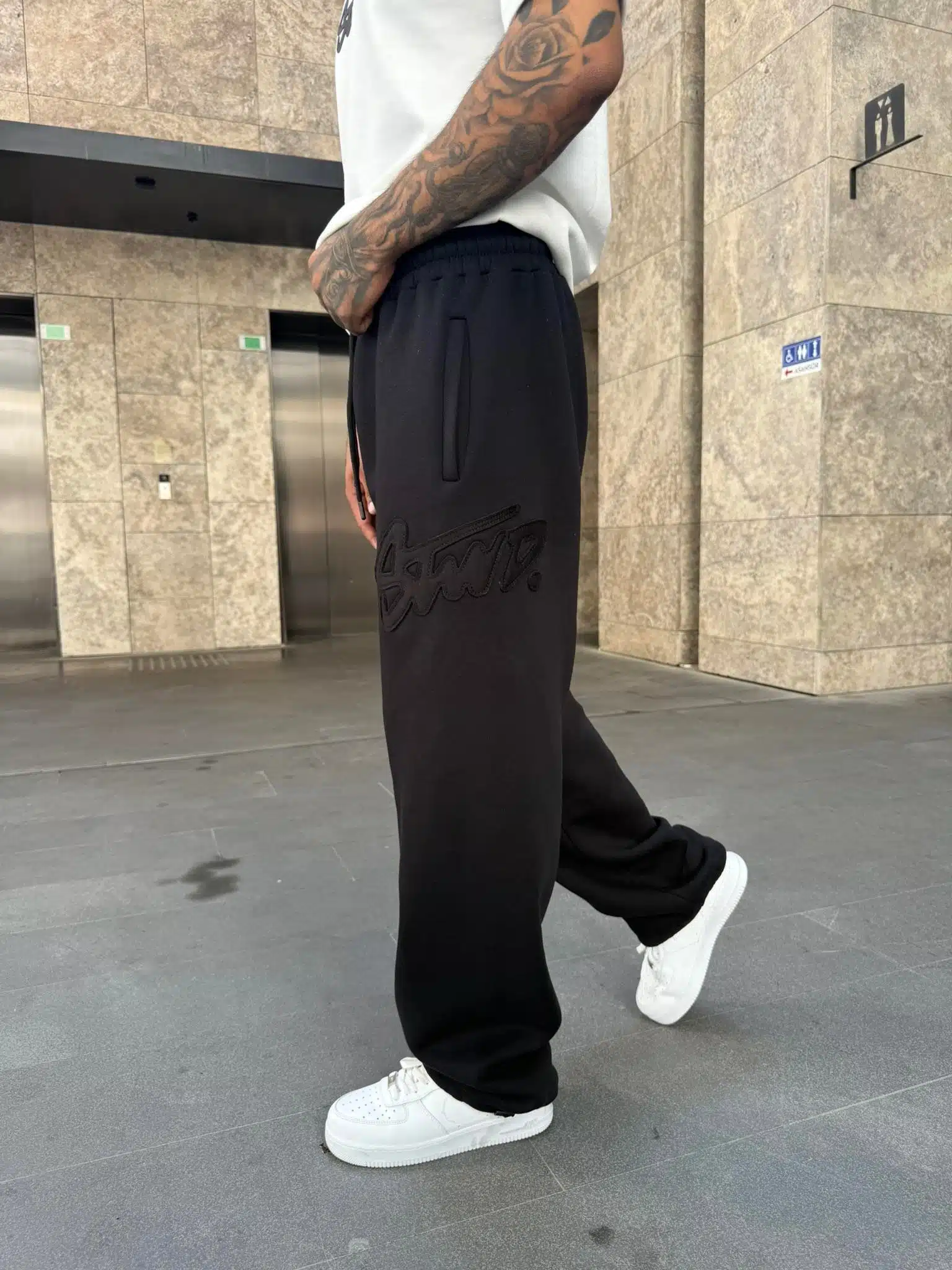 ‘SW’ Lazer İşleme Lastikli Stoper Paça Baggy Eşofman – Siyah