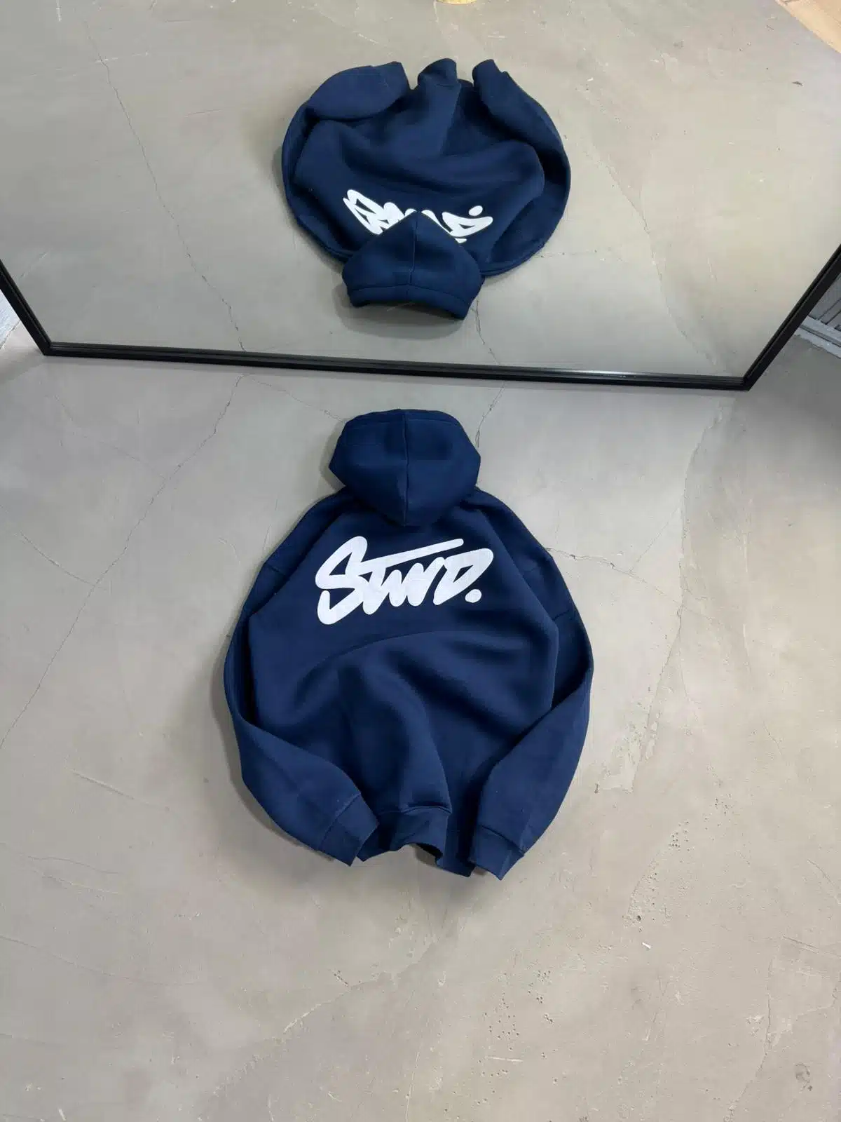 SW Sırt Baskılı Kapşonlu Sweatshirt – Lacivert