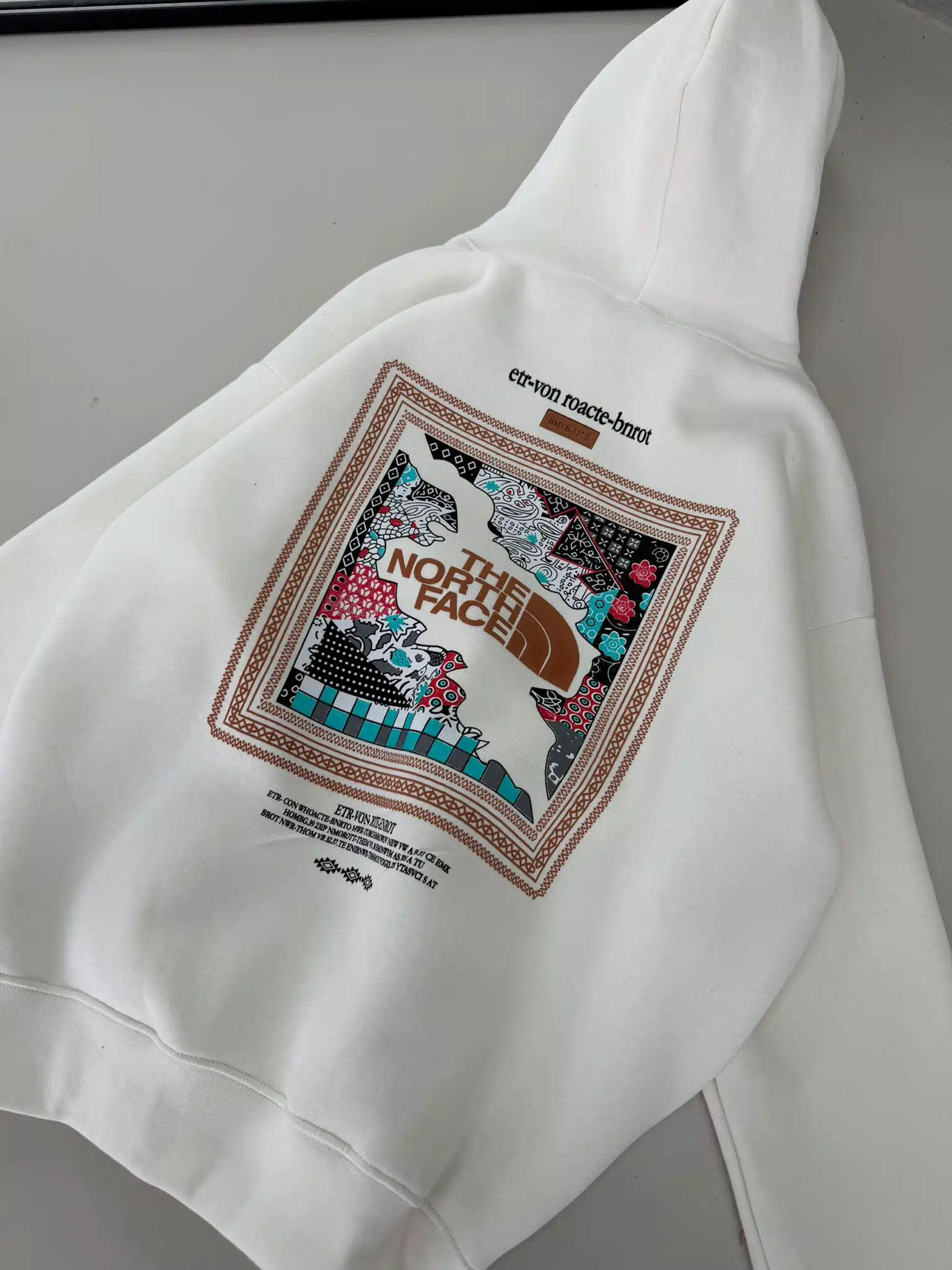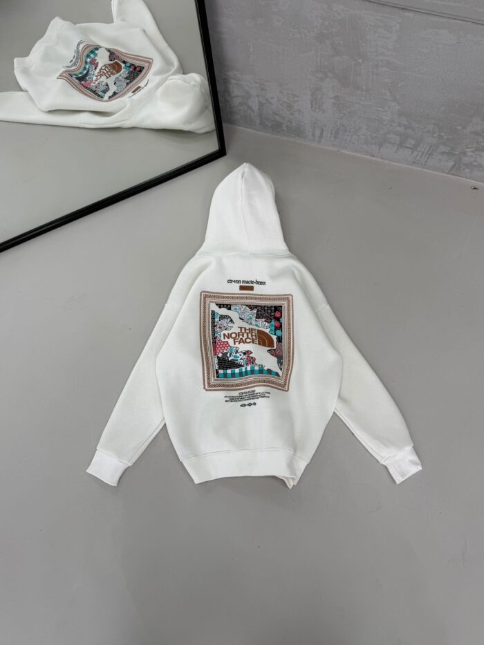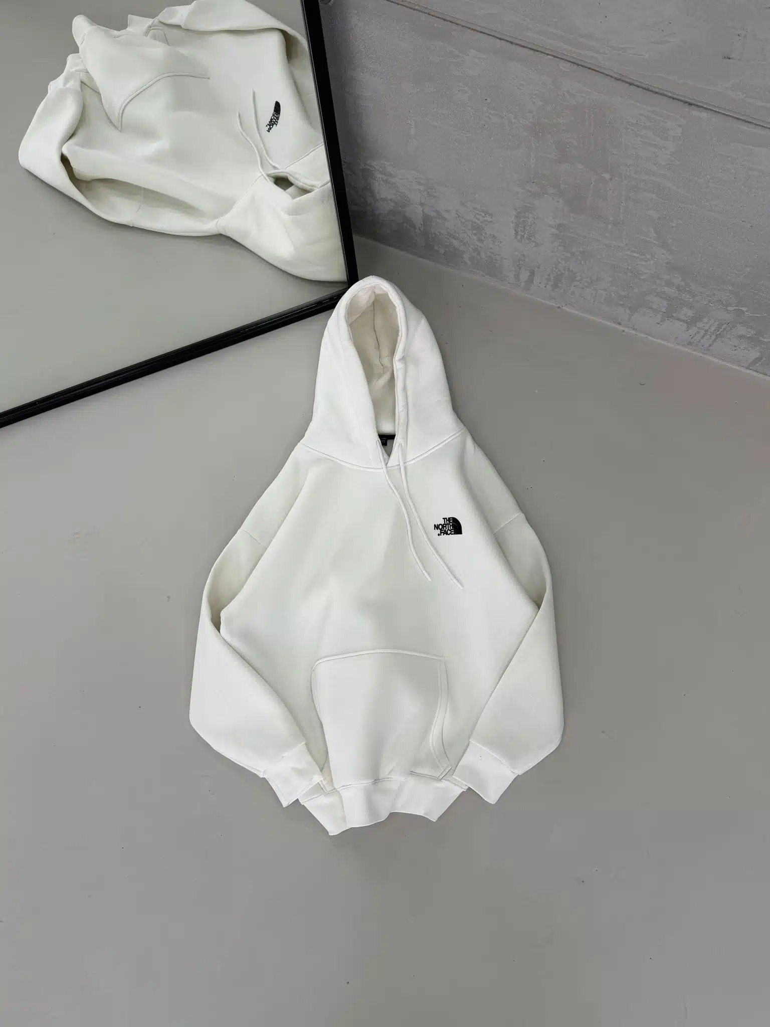 THE NF Kabartma Sırt Baskılı Kapşonlu Üç İplik Sweatshirt – Beyaz