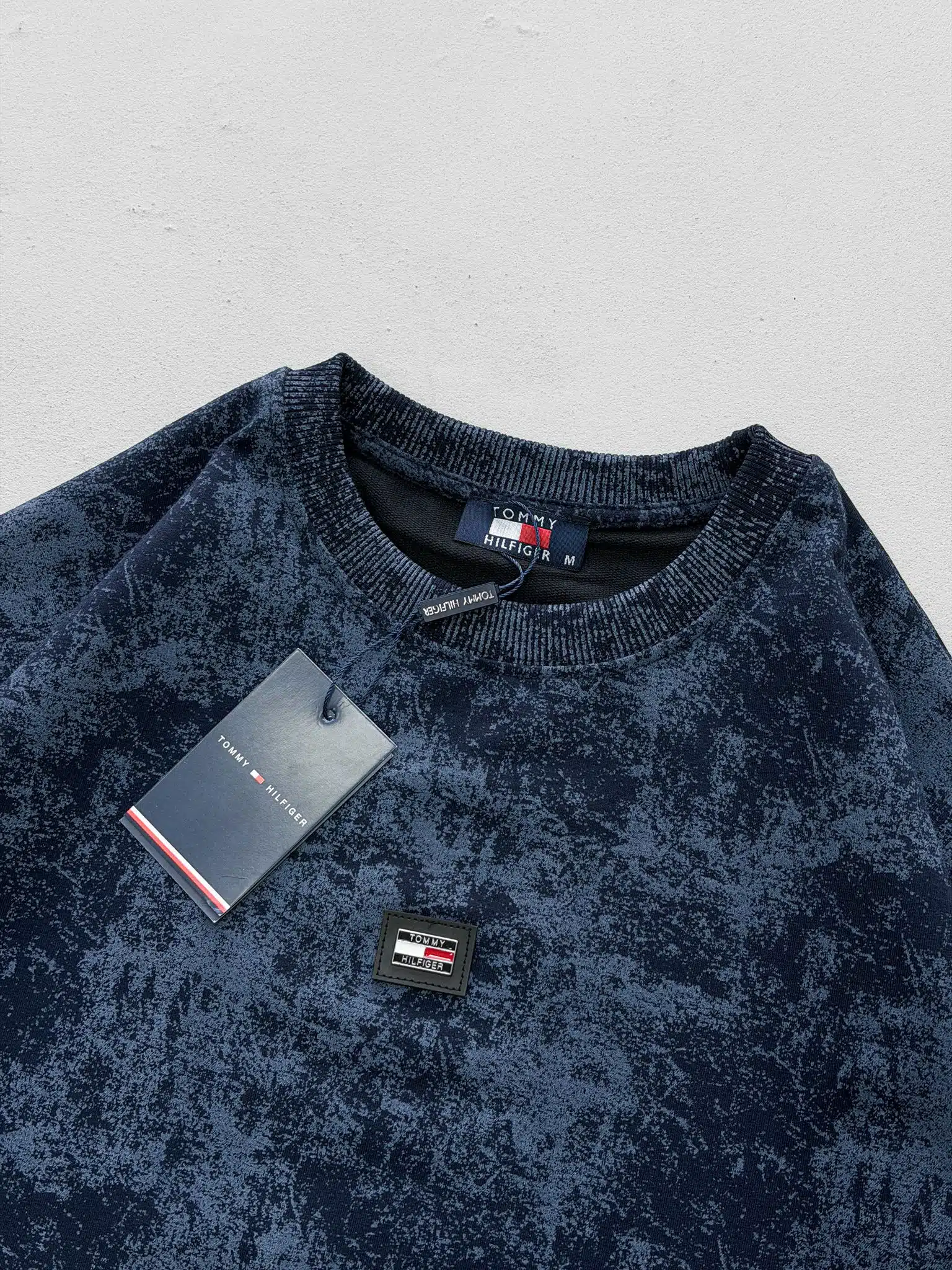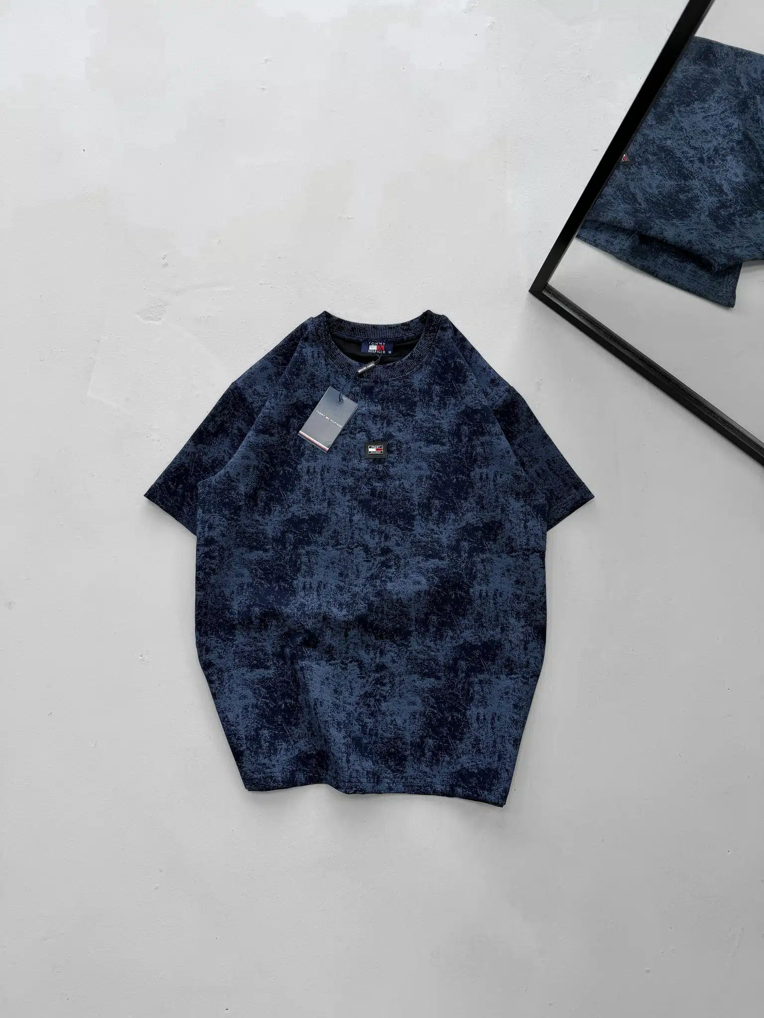 TM Yıkamalı Bisiklet Yaka Tshirt-İndigo