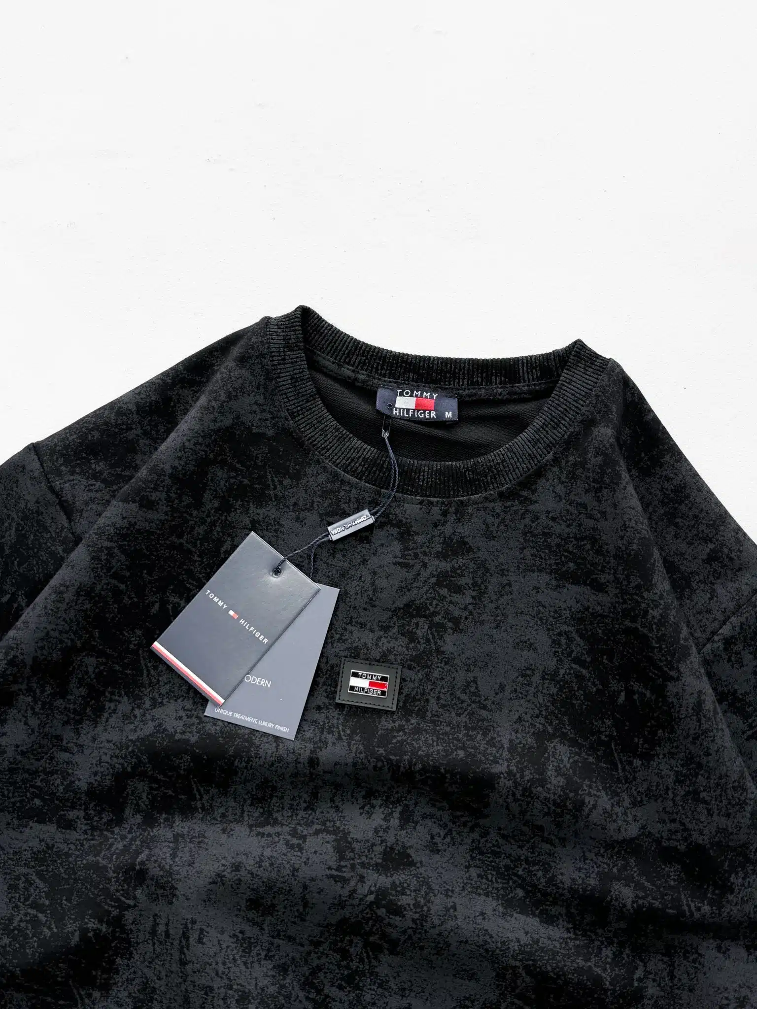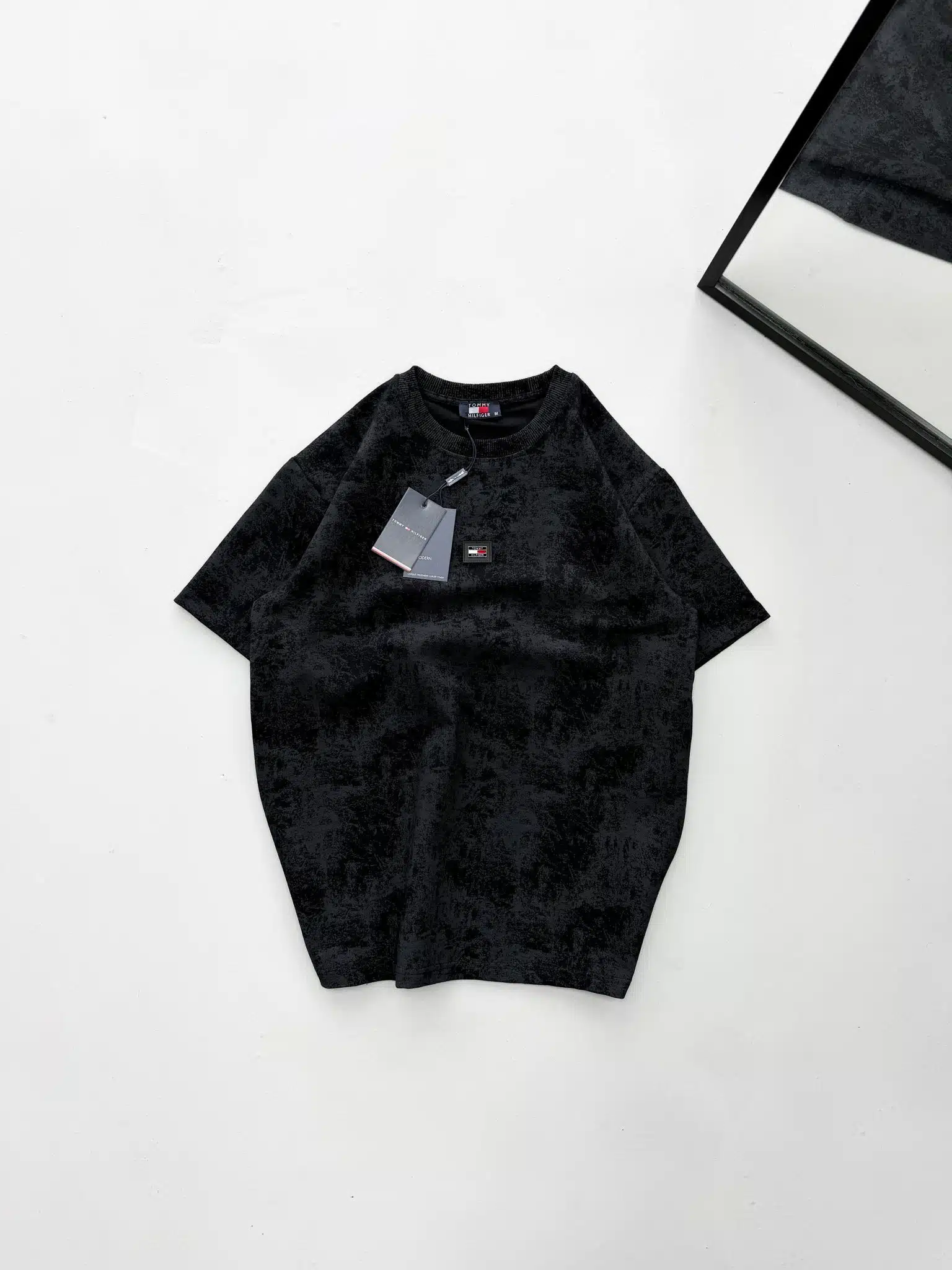 TM Yıkamalı Bisiklet Yaka Tshirt-Siyah